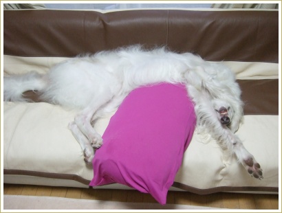 へそ天で寝てたと思ったのに気が付いたらこんな寝相になってました。(^◇^;