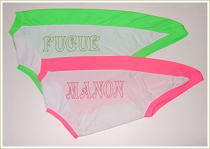 派手派手な蛍光ピンクと蛍光グリーンのメッシュ生地に白のスポーツニットで。ポリエステル100%なので汚れ落ちもばっちり。