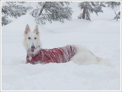 ただし、雨脚の強いときや長時間のお散歩ではやっぱり雨が染み込んでしまいます。それでも何も着せてないよりは後の始末がだんぜん楽です。