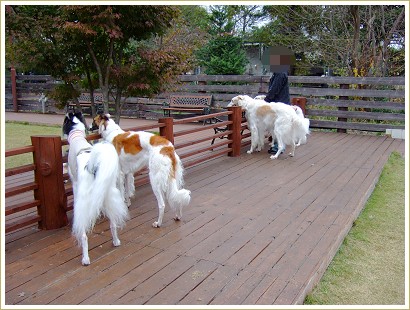 隣のワンコが気になってしょうがない野次馬ボルたち。(爆)