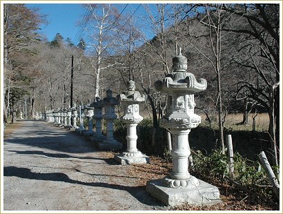 通り道の温泉寺の参道には石灯籠がずらり。