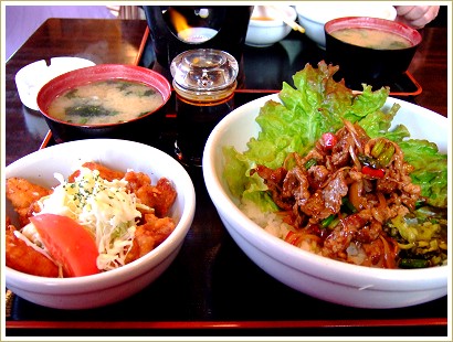 念願かなってがっつり食べたのは「カルビ焼肉丼&唐揚定食」。