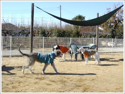 貸切状態のドッグランでまったり遊ぶ「熟女~ず」。(^m^)