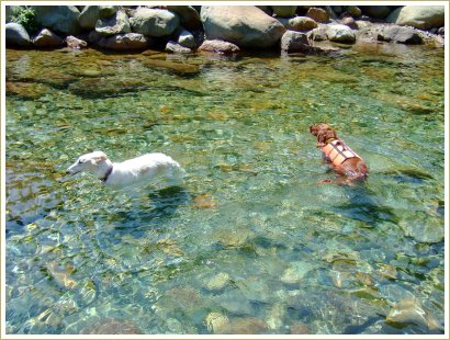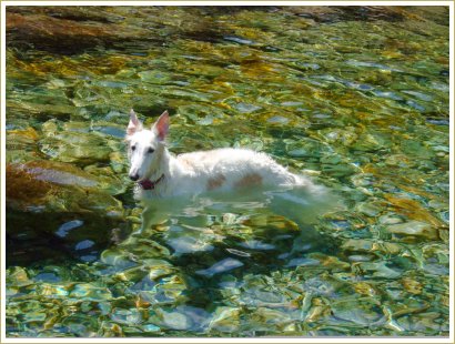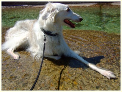 わかるかな?水の中で「フセ」してます。たとえ水深が3cmぐらいでも水の中だも~ん。(^◇^ゞ