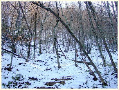 なんと!林はすっかり雪化粧。ニュースで大雪って言ってたけどこの辺りもかなり降ったのね。