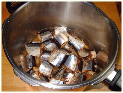 秋刀魚は頭落として、わた抜いて圧力鍋???