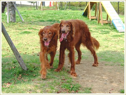 まのさんが暑いのはNGなので少し遅れてランへ行くと赤毛ちゃんと黒毛ちゃんが遊んでましたよ~。