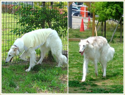 うちの白毛1号・2号はこれまた木陰でサラダバー食べ放題状態!もしもし?ここはドッグランですよぉ~?(爆)