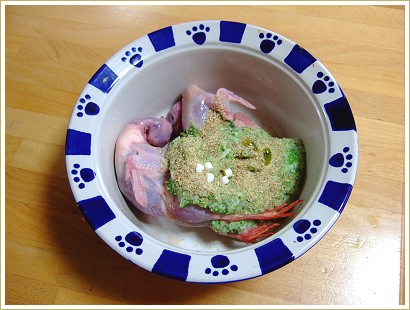 ウンチが固くなりすぎるようだったら、同じ鳥類っていうことでうずらを減らして鶏胸肉でも入れようかと思って。