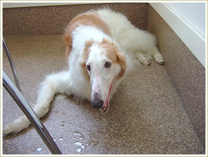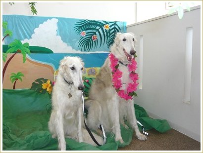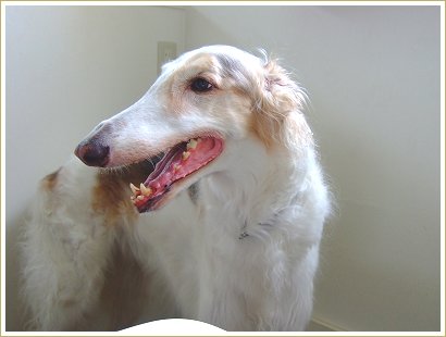 ドッグカフェ、ボルゾイだと口が隙間に突っ込めるんですよ~。