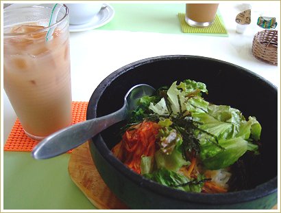 ランチメニューは石焼ビビンバ。ドッグカフェらしからぬメニューだけど美味しかったよん♪