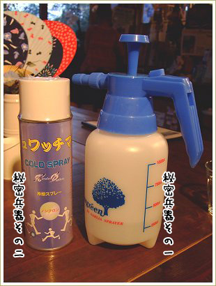 秘密兵器その一で洋服に水をかけてシュワッチマンでさらに冷やす!