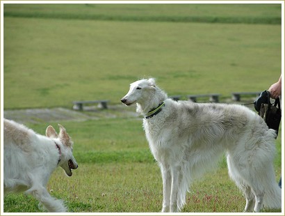 尻尾がきゅぅ~っと入っちゃって腰がひけちゃってとにかく車に戻る!ってきかないのよ。