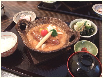 オーダーしたのは看板メニューの「シチューハンバーグ」 グツグツの熱々!ソースがとってもマイルドでうんまぁ~い!これまた口コミはホントでした!(≧∇≦)
