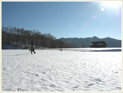 素敵な雪原の写真と楽しそうなまのさんとふうさんに