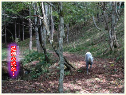 左側の池、ここに入るとドロドロになっちゃうのよ…。でもお水好きなまのさんが見逃すはずもなく…。