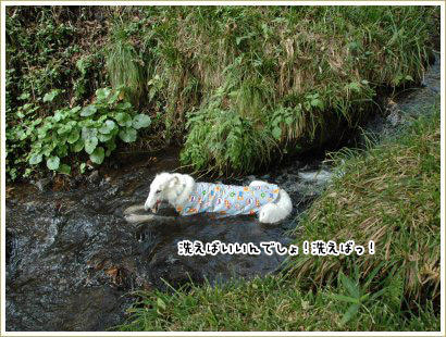 私の怒りのオーラを敏感に感じとったのか、小川に入って自ら汚れを落とすことにしたらしい。よしよし、これで泥池に入ったことはチャラにしてあげよう!(笑)