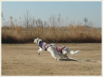 ふぅさんは小鹿と一緒にランニング。おっ、ちゃんと脚側してるじゃないの~♪
