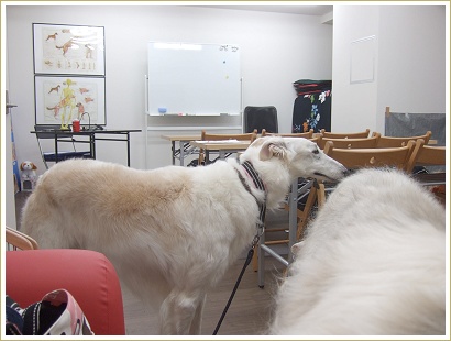 今日はドッグマッサージの概略と基本の手技を教えてもらいました。