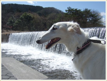 寒くてここでの散歩は中止。下界に戻って川沿いの広い公園での~んびりお散歩。
