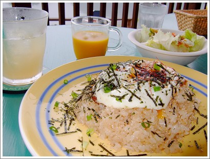 ここには遊びに来たわけじゃなくてお昼ご飯が目的。テラス席は涼しくてとぉ~っても快適♪