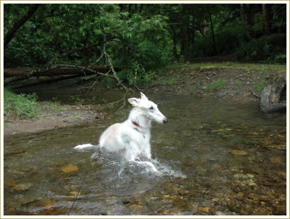 ふふ、まのさん、お待ちかねの水遊びだよ~。これで青空だったらいい写真だったのになぁ~。