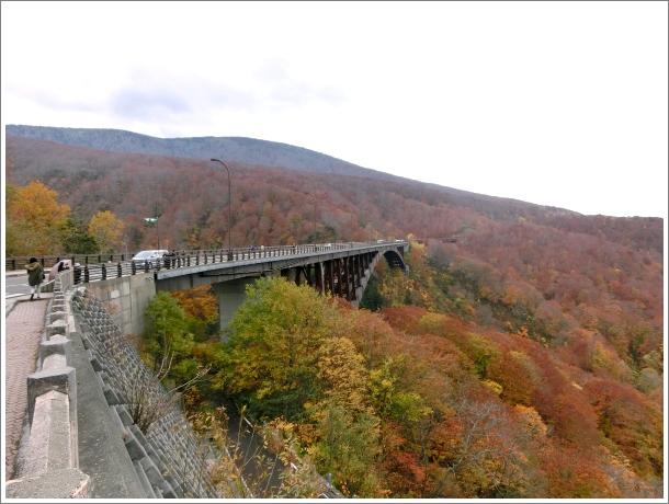 黒石ICで降りてまず向かったのは城ヶ倉大橋。八甲田山の麓にかかる橋です。