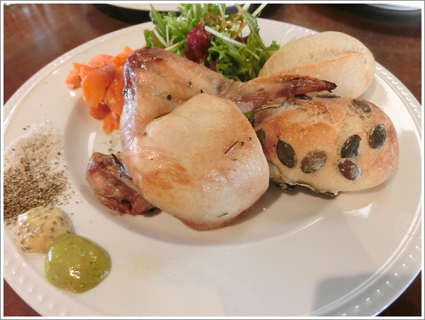 私がオーダーしたのは看板メニューのロティサリーチキン、小鹿はハンバーグ。