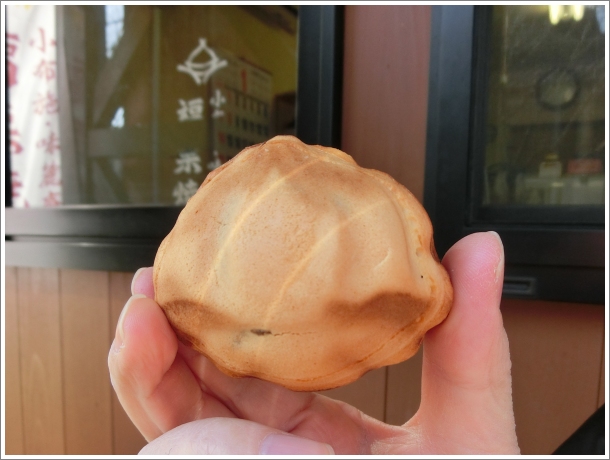 味麓庵の福栗焼きです。シーズン中には行列ができるそうですが、今日は待ち時間はゼロ!お店の前に縁台があったのでこちらでいただいていくことにします~。