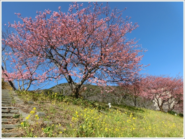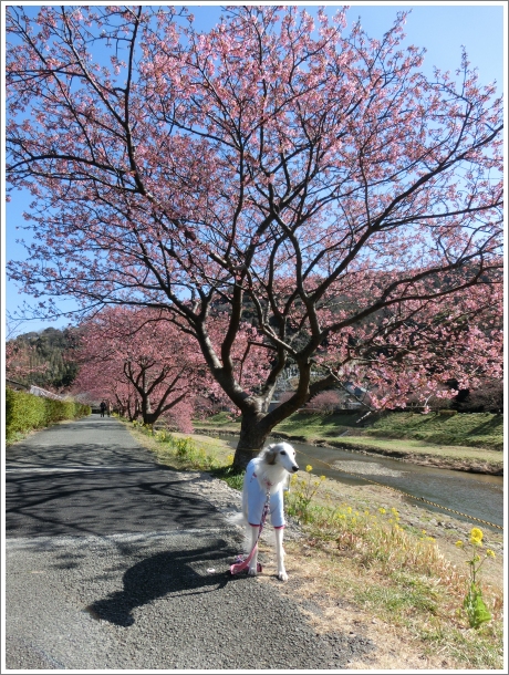 立春も過ぎ、春の気配が漂ってきた今日この頃。 河津桜の開花情報が聞こえてきた伊豆へ旅行してきました。 ![]() 沼津から伊豆縦貫道を通っているときに気になった月ヶ瀬梅林の幟。時間もあることだし、ちょっと寄り道していくことにしました。 急坂を登っていくと想像してたよりもず~っと広い梅園が広がっていたけれど、残念ながら梅はまだほとんどつぼみ。わずか数本だけがちらほらと咲いていたので証拠写真を。笑 1500本の梅が植えてあるそうなので満開のときには素晴らしい景色になるんでしょうね。 (渋滞しそうだけど。(^-^;) ![]() さてさて、今日は南伊豆中心に散策する予定です。 まずは下田のペリーロードへ。家を出るときには雪がぱらついていて「マジか!?」と思ったけど、ここ下田はぽかぽか陽気のいい天気! ![]() ランチに行ってみたいお店があったけどオープンの札がかかっているのに鍵がかかっていて中にも人の気配なし。(実は貸切だったという…。FBには定休日だけじゃなくて突発的な予定も記入しておいて欲しい…。) どうしようかと悩んでいたらテラス席のあるお店があったのでお聞きしてみたところ、茉莉花も一緒で大丈夫とのことなのでランチはこちらで~。 4種のチーズのショートパスタとフレッシュトマトとモッツァレラのパスタ。トマトパスタはさっぱりしていてチーズパスタは超濃厚でした。(o^^o) ![]() 食後のデザートは喫茶PEPEのペリーアイス。ラムレーズンとチョコチップが入ったチョコレートアイス。甘すぎなくて美味しい! 入り口横の水色ホースは実は温泉なんです!タオルも用意されていて誰でも手洗いができるようになってました。 さすが、温泉地! ![]() 車は下田公園の駐車場に停めていたので戻りがてらペリー提督の胸像前で写真を1枚。 ホントに雲ひとつない、いいお天気~♪ ![]() お腹もいっぱいになったので次の目的地へ! おっとその前に大好きな吉佐見海岸を通るので寄り道して行きます~。 ここでウエディングドレスとタキシードを着たカップルの撮影会をしてました。 何かの宣伝写真なの?それとも海外の方? 海岸近くは風が強いので、髪セットが乱れて撮影が大変そうでした。( ̄∀ ̄;) 一方、茉莉花は砂浜を走り回って大満足! ![]() 着いたのは吉佐見浜からもほど近い田牛の龍宮窟です。ここの洞窟は上から見るとハート型に見えるとか。 一度来てみたかったのよね~。 事前にチェックしたところ、駐車場の台数が少ないということだったけど確かに道端に十数台分しかありませんでした。隣のサンドスキー場の駐車場も兼ねてるからタイミングが悪いと停められないこともあるのかも。 ![]() まずは上に登ってハート型を見に行きます。 おぉ!ホントだ!ハート型発見♡ 最初に見つけた人はすごいわ~。 ![]() ![]() 階段を下りて洞窟へ。 下りきると天井がぽっかりと開いていて神秘的な光景です。でもなぜだか心落ち着く不思議な場所でした。 ![]() 最後の目的地は今回の旅行の目玉、下賀茂温泉みなみの桜を見に行きまーす。(*^-')b 今年の河津桜は開花が遅れているとのことだったのでちょっと心配してたんですが。。。 綺麗に咲いてます~! 木によって三~六部咲きぐらいかな?(逆側の岸はまだまったく咲いてませんでしたが。) 菜の花の開花が遅れていて桜と菜の花のコラボは見れなかったけど十分です! ![]() ![]() ![]() ![]() まのふぅを連れて初めてみなみの桜を見に来たのは2009年のことでした。 今はもう閉めてしまった大好きなお宿のオーナーに教えてもらって来たこちらは河津桜も菜の花も満開でまさに見ごろだったっけ…。 あの時、今の茉莉花と同じように桜の下でまのふぅの写真を撮ったな~と懐かしく思い出したのでした。 ![]() チェックインする前にお茶しよ~と事前チェックしておいたお店に行ってみると、定休日じゃないはずなのにお休みっぽい。あー、今日はこんなのばっかりでついてないわぁ…。 でも、禍福は糾える縄の如し! 古民家カフェの看板に沿って行ってみたら素敵カフェを発見ですよぉ~。(*≧∇≦*) テラスがあったので犬OKがどうか聞きに行ってみたら店内がこれまた素敵だったので茉莉花は車内残留決定。 すまんねぇ。(^-^; ![]() ジャズが流れる落ち着いた店内で珍しくイチゴスムージーなぞを頼んでみる。(;^ω^) 甘すぎずに私好みの美味しいスムージーでした。 またこちらに来ることがあったら寄ってみたいカフェだけど、途中がとにかく急で対向車がきたらすれ違えないような細い道、しかも駐車場が数台しかないのでちょっと覚悟がいるかも!? ![]() お宿にチェックインです。ラッキーなことに宿泊客は我が家だけ。 部屋には手作りのうぐいす餅がありました。これがまた美味しくて~。 一息ついたら夕食前に温泉へ。 ちょっとぬるめだったけどいいお湯でした。(o^^o) ![]() さて、お風呂を上がったら楽しみにしていた夕食です。 何これ、何これーーー!テーブルの上がすごいことになってるんですけど!なんだか笑っちゃうぐらいすごい!(すごいとしか言
